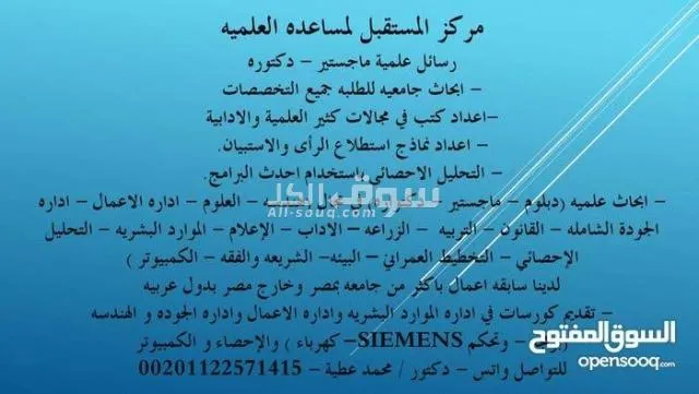 مركز المستقبل لمساعده العلميه فى اعداد رسائل دكتوره و رسائل ماجستير